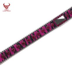 Designed for both style and function, this eco-friendly pet collar features vibrant violet rhinestones on a durable PU leather base. The adjustable size (25-61cm) fits most small to medium pets comfortably. Perfect for daily walks or training sessions, the collar includes a traction rope function. Customization options allow for personalized logos or designs, making it ideal for pet businesses or special gifts. The product carries standard safety warnings and is suitable for both dogs and cats.