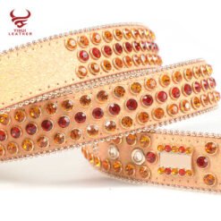 This plus-size western belt features a vibrant orange snake pattern PU leather base with striking red rhinestones. The 3.8cm width and customizable length accommodate various body types comfortably. The zinc alloy pin buckle ensures durability while maintaining a stylish look. Perfect for both men and women who want to make a bold fashion statement. The DNA-inspired design adds a unique touch to this already eye-catching accessory. Meets all EU safety standards and passes rigorous testing for quality assurance.