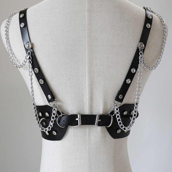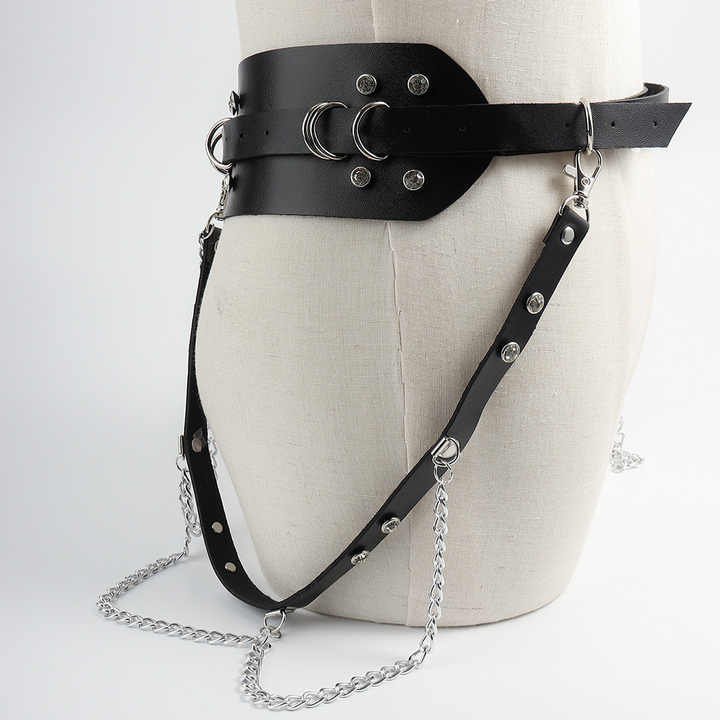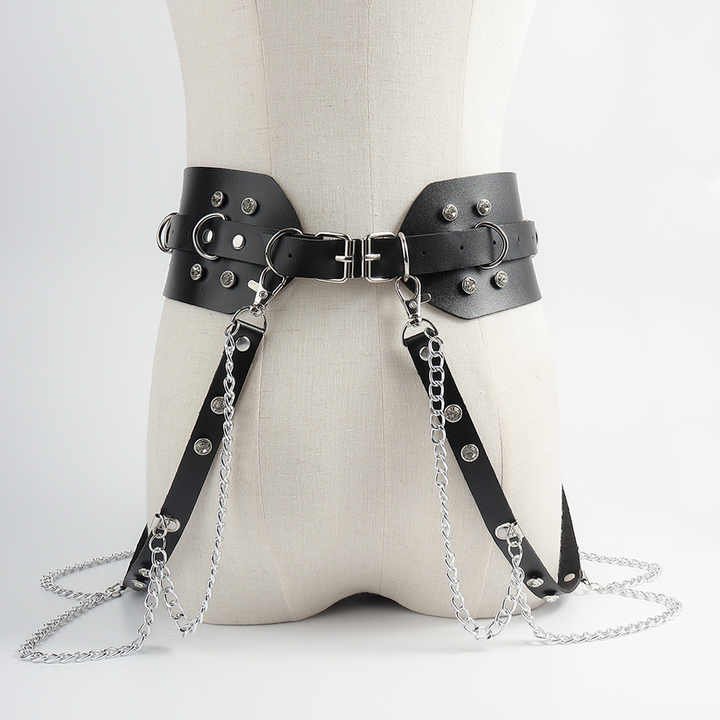 This edgy body chain belt combines punk aesthetics with gothic glamour. Made from metal and PU materials, it offers adjustable sizing for customized fit. Perfect for Halloween, cosplay, or alternative fashion, it creates dramatic silhouettes. The bondage-inspired design adds edge to nightdresses or clubwear. The black leather accents contrast beautifully with metallic chains for striking visual impact. Measuring 20x10x5cm when packaged, it’s ready for retail display. With MOQ starting at 2 pieces, it’s accessible for small boutiques. The belt can be customized in size and details to match specific themes or outfits. Ideal for making bold fashion statements, it transitions well from costume parties to edgy everyday wear. The high-quality materials ensure durability while maintaining flexibility for comfortable movement.