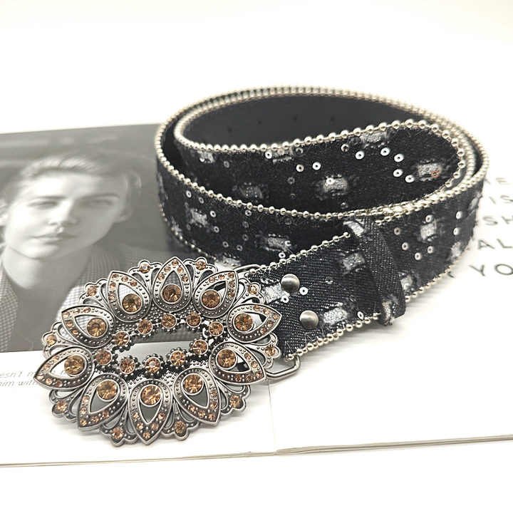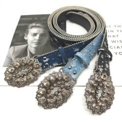 This eye-catching western belt combines punk rock edge with bling sophistication. The 3.5cm wide PU leather strap features studded rhinestones and a substantial zinc alloy buckle. With adjustable length, it fits various waist sizes comfortably. The unisex design works for both men and women, perfect for jeans or casual wear. The vintage retro aesthetic pairs well with multiple styles from boho to rocker. Made from high-quality faux leather and metal components, it offers durability without compromising on style. The belt comes in attractive packaging measuring 20x15x5cm, ideal for retail display. Perfect for making a fashion statement, this belt adds sparkle and edge to any outfit. The nickel-free materials ensure comfort for sensitive skin while the sturdy construction promises long-lasting wear.