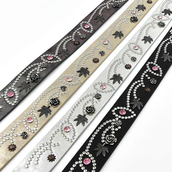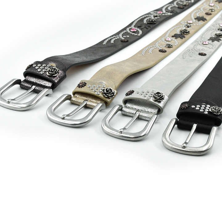 This stylish belt combines vintage appeal with modern craftsmanship, featuring metal rivets and rhinestone accents. The 3.5cm wide PU leather strap offers adjustable length for perfect fit. The gold-bright zinc alloy couple buckle adds luxurious touch to the design. Perfect for jeans or casual dresses, it elevates everyday outfits. The BSCI-certified production ensures ethical manufacturing standards. With quick 7-15 day sample turnaround, it’s ideal for fashion buyers. The belt comes in sets of 10pcs/Opp bags, convenient for retailers. Available for OEM/ODM projects with custom logo options. The high-quality materials ensure durability while the rhinestone details add subtle sparkle. The product meets international safety standards while offering fashionable aesthetics suitable for various age groups.