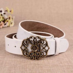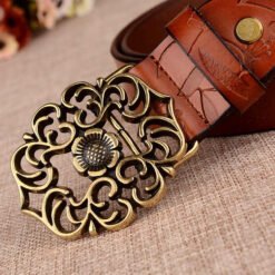 Featuring an exquisite hollow flower buckle, this 3.2cm belt combines vintage elegance with quality craftsmanship. Made from 100% genuine leather, it offers durability and a luxurious feel. The carving pattern details add artistic flair, making it suitable for both casual and dressy occasions. Adjustable for personalized fit, this belt serves as a sophisticated waist accent for dresses, jeans, or skirts. Its timeless design appeals to women seeking classic accessories with distinctive details.