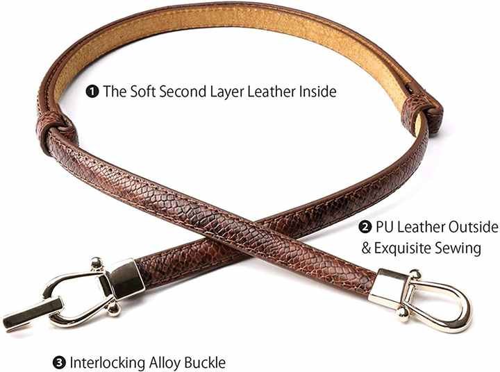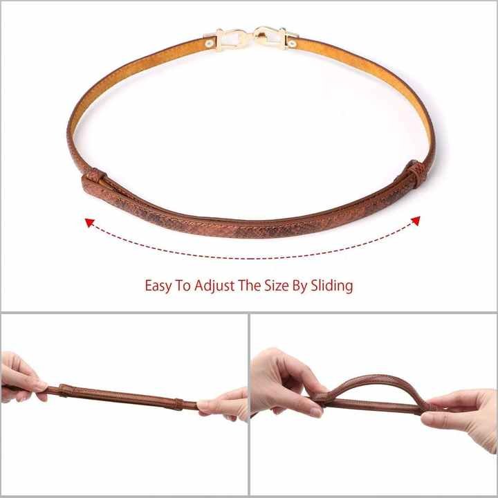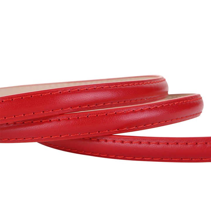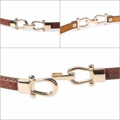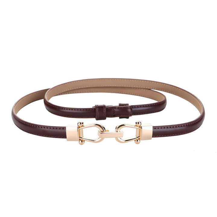 This ultra-thin 1cm belt offers delicate styling with a golden buckle on PU leather. Certified by CTC and Intertek, it meets safety standards (free from harmful chemicals). The 95cm length makes it perfect for petite frames or layered looks. The elegant golden hardware adds a touch of sophistication to the slim profile, suitable for dresses or high-waisted outfits. A minimalist accessory that provides subtle waist definition without bulk.