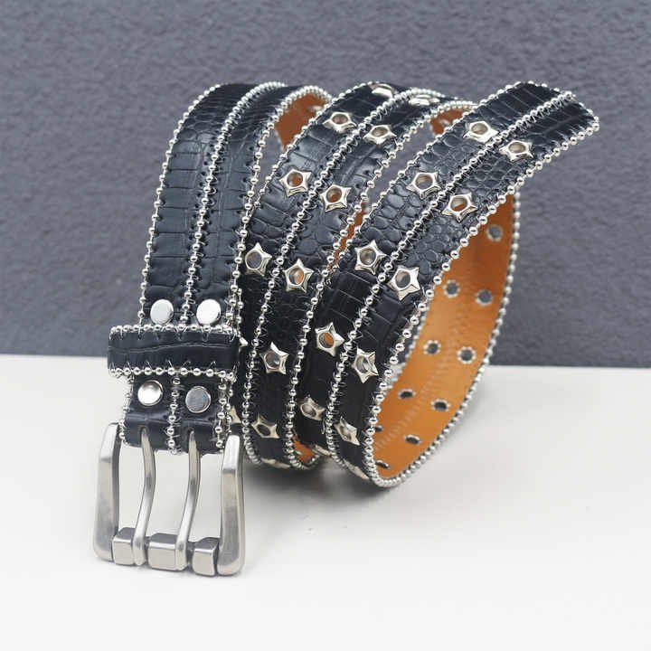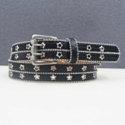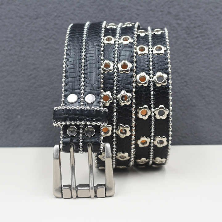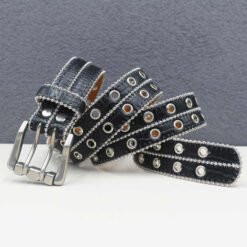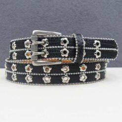 Featuring double grommet holes and studded details, this 4cm wide PU leather belt makes a bold gothic fashion statement. The BSCI-certified product combines durable materials with edgy design elements suitable for unisex wear. Its alloy pin buckle provides secure fastening while maintaining the belt’s punk aesthetic. The 115cm length accommodates various body types, and the lightweight construction (0.2kg) ensures all-day comfort. Ideal for alternative fashion enthusiasts, this belt adds dramatic flair to jeans, skirts, or layered outfits.