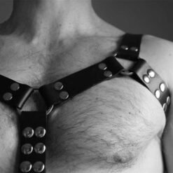 This masculine 3.5cm wide PVC harness features heavy-duty construction with adjustable straps (70-90cm) and zinc alloy buckles for secure fit. Manufactured in Zhejiang, China using chemically tested materials free from nickel, cadmium and AZO dyes. Designed for gay fetish wear or BDSM use, the harness offers multiple attachment points with reinforced stitching at stress areas. Each piece ships in protective packaging (10 belts per carton) with logo customization available. With a 10-piece MOQ and 300,000 unit monthly capacity, this product serves wholesale buyers globally. The design passes international safety standards and ships from Shanghai/Ningbo ports. A premium offering for adult fashion retailers.