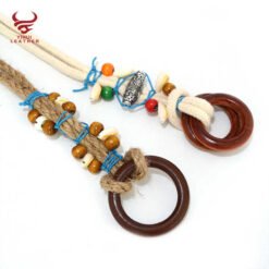 Summer Vintage Pattern Handmade Wax Round Wooden Buckle Beads Braided Waist Ethnic Rope Belts