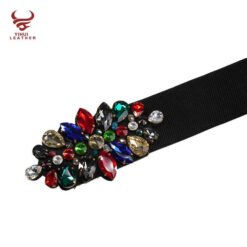 This luxurious wide cummerbund belt features sparkling rhinestones on polyester elastic base. The 5.8cm width creates dramatic waist accent. Snap popper closure ensures secure fit. Customizable length (75-110cm) for perfect sizing. Certified by SGS, CTC, and Intertek for quality assurance. Perfect for formal events, pageants, or evening wear. The floral pattern adds elegant detail. Lightweight at just 0.08kg despite its glamorous appearance. MOQ of 100 pieces makes it ideal for bridal parties or bulk orders.