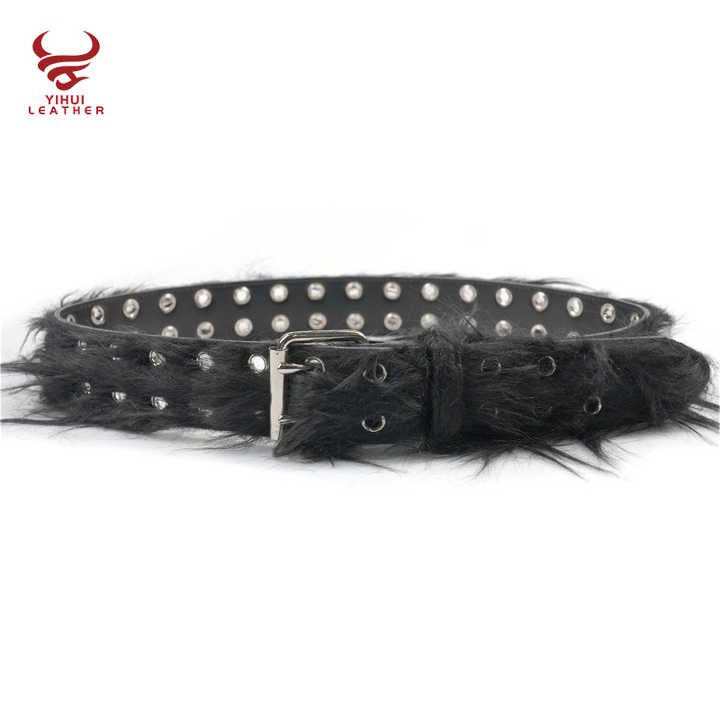 The Wholesale Fancy Faux Fur Leather Punk Belt Men Double Pin Buckle Double studded Holes Black Horse Hair PU Leather Belt for Women is a stylish and versatile belt designed for fashion-forward individuals. Crafted from high-quality materials, it delivers durability and comfort for everyday wear. Perfect for pairing with both casual and formal outfits, this belt elevates your wardrobe with a touch of elegance. Made with premium materials for a luxurious feel. Made with premium materials for a luxurious feel. Designed with the ideal dimensions for a comfortable fit.