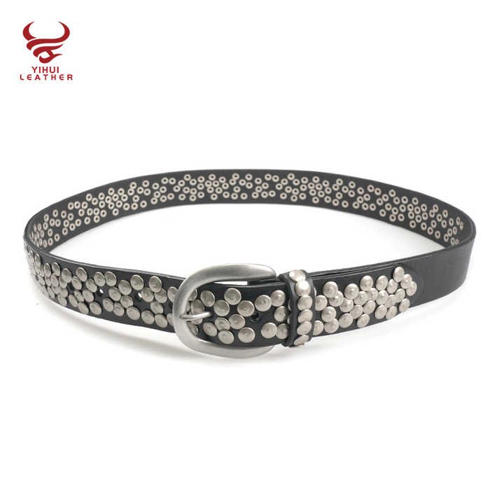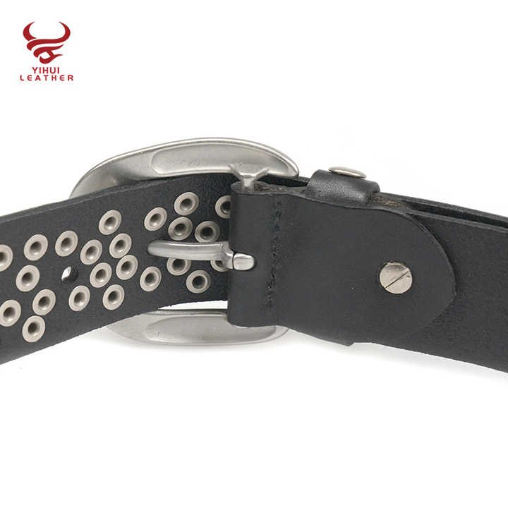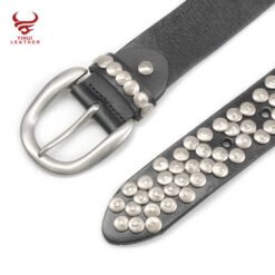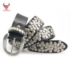 Wholesale Metal Mushroom Studded Leather Belt Genuine Leather Belt Luxury Black Punk Rock Cowhide Leather Belt for Man Women