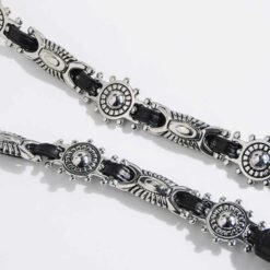 This edgy skinny belt combines punk aesthetics with western details on 2cm wide PU leather. The adjustable length and carved metal accessories create unique visual interest. The zinc alloy couple buckle offers secure fastening with stylish appeal. Perfect for pairing with dresses or skinny jeans for alternative fashion statements. BSCI-certified production ensures ethical manufacturing standards. The belt comes in compact 10x10x3cm packaging, ready for retail. Available for customization with different metal accessories or colors. The lightweight design ensures comfort while the bold details make strong style impressions. With MOQ starting at 2 pieces, it’s accessible for small boutiques. The high-quality materials ensure durability while maintaining flexibility for comfortable wear. Ideal for those seeking distinctive accessories with rocker edge.
